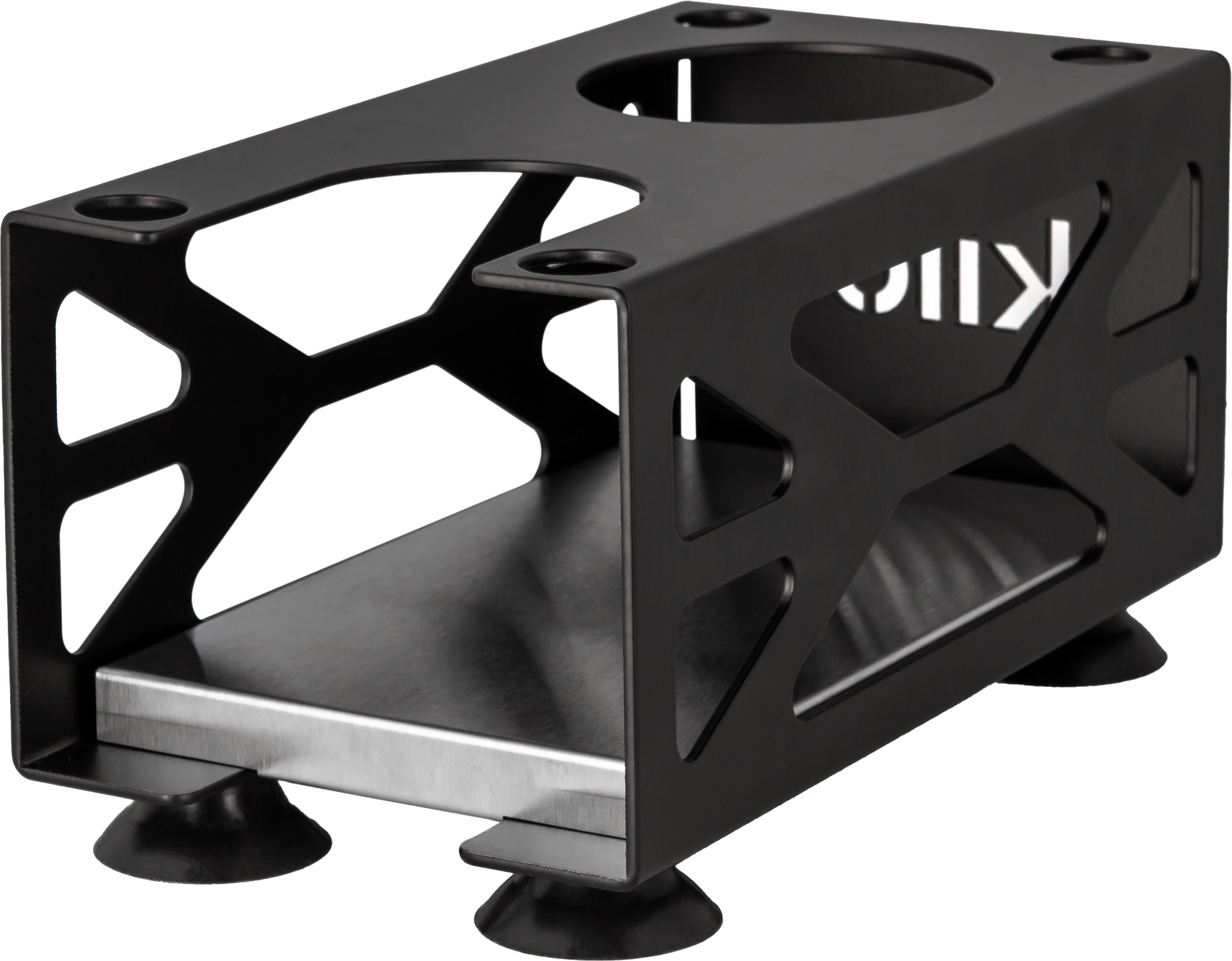 Kilo' stand space saver improves ergonomics while gaining space in the counter bench.