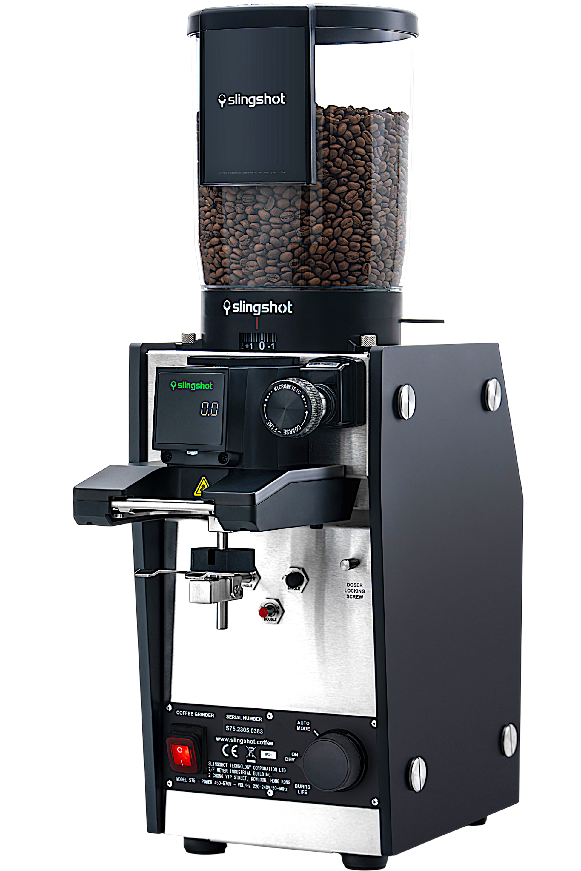 No more lost revenue due to coffee waste Slingshot features a sealed distribution chamber which accurately delivers the ground coffee to the portafilter with no loss of coffee. No more shaky hand to avoid ground coffee spill from the portafilter